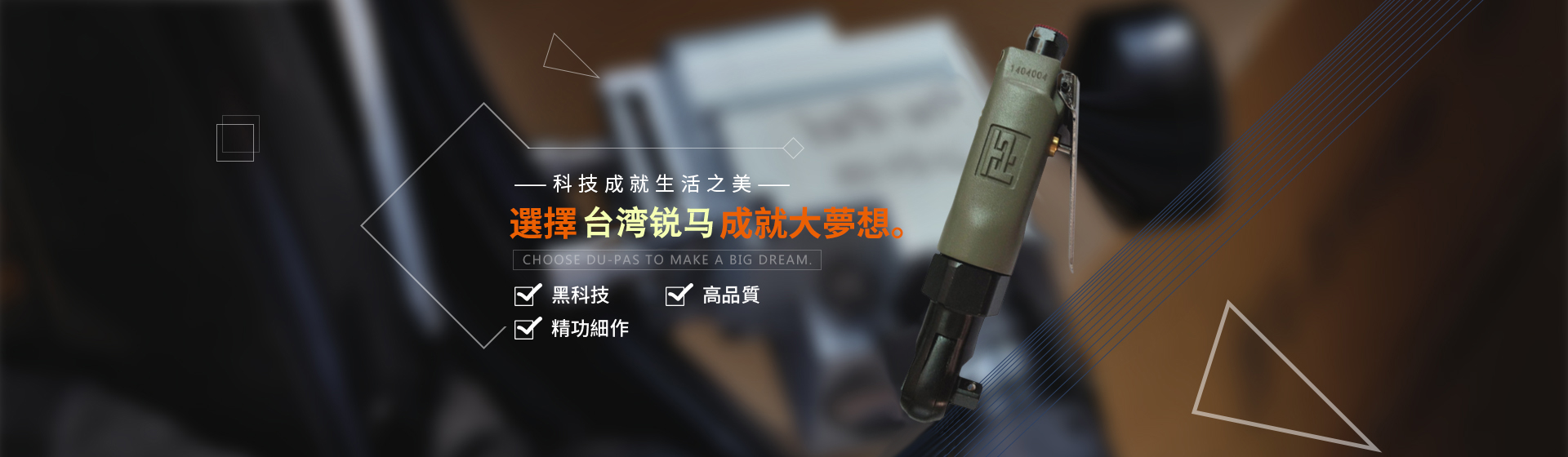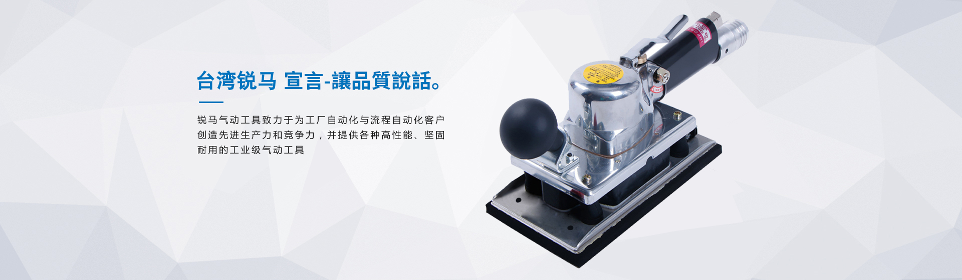 銳馬氣動(dòng)工具廠(chǎng)家是臺(tái)灣專(zhuān)業(yè)制造氣動(dòng)工具廠(chǎng)"筌誠(chéng)機(jī)械工業(yè)",30多年來(lái)致力于氣動(dòng)/電動(dòng)工具領(lǐng)域之研發(fā),生產(chǎn)和銷(xiāo)售,努力提升本身產(chǎn)品價(jià)值,在臺(tái)灣氣動(dòng)工具制造領(lǐng)域始終處于領(lǐng)先地位,并成功銷(xiāo)往國(guó)際市場(chǎng)。